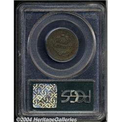 <B>1850<1/2 C> PR61 Brown PCGS.</B></I> B-1, C-1, the only known dies, Low R.7 as a proof. Tobacco-brown, ruby-red, olive, and mauve patina envelops this exquisitely struck specimen. The obverse has a few moderate handling marks, and both sides have scattered small spots. Encapsulated in an older green label PCGS holder. Population: 1 in 61 Brown, 7 finer (3/04). <BR><BR><B>Important notice:</B> Heritage usually auctions material at the rate of 200-250 lots per hour. On some occasions eBay Live bid software or the Internet may not be able to keep up with the pace of the auction. We recommend placing a realistic absentee bid now as insurance to avoid disappointment. Occasionally the auctioneer may eliminate or reject an eBay Live bid, and the auctioneer may also reopen a lot after the close of the eBay live bidding (usually because we missed an audience bid), and may reject your bid even if it shows you as the winning bidder. By bidding via eBay Live, you agree that Heritage may award the lot to another bidder at its sole discretion under the circumstances described above or any other reasonable circumstances. Since eBay bids are not shown to us until we open the lot on the floor, we treat those bids just like floor bids. In most cases the floor responds before the eBay bid is presented to us, due to Internet lag time, so for consistency we have made it a policy that floor bids are always considered first over tie eBay live bids. Also please note that all Heritage lots purchased through eBay Live carry a 20% Buyer's Premium. Please make sure you read the Terms and Conditions before you bid.