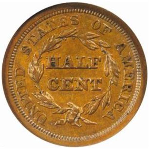 1850 1/2C. B-1, C-1, Rarity-2. AU55 BN (NGC)