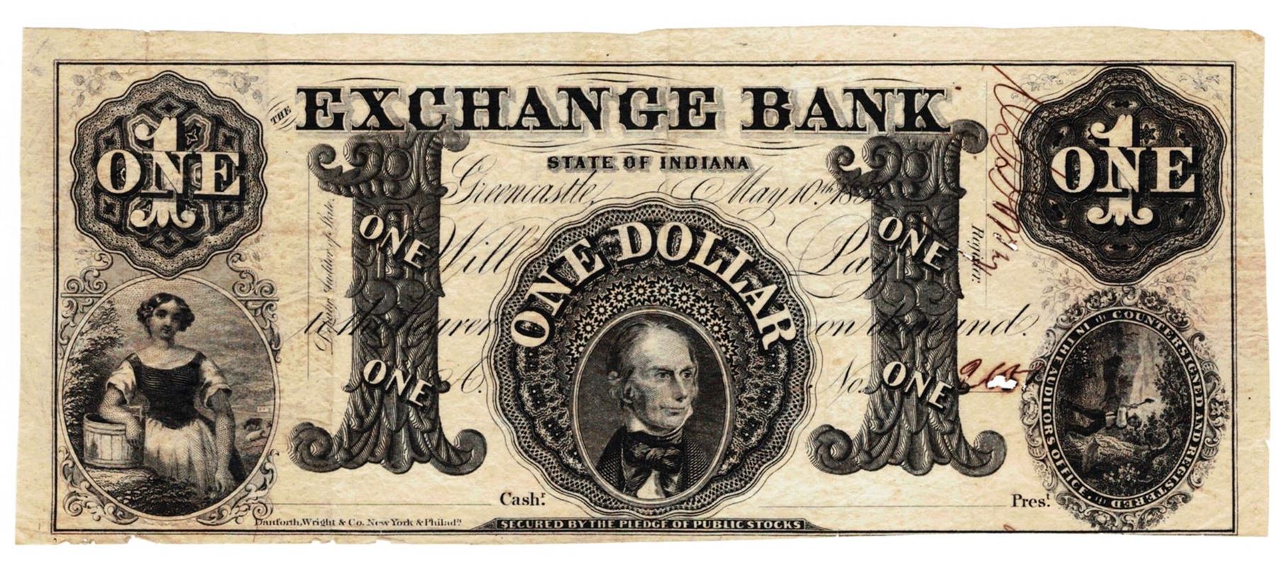 One 1850 $1 Exchange Bank of Indiana Bank Note