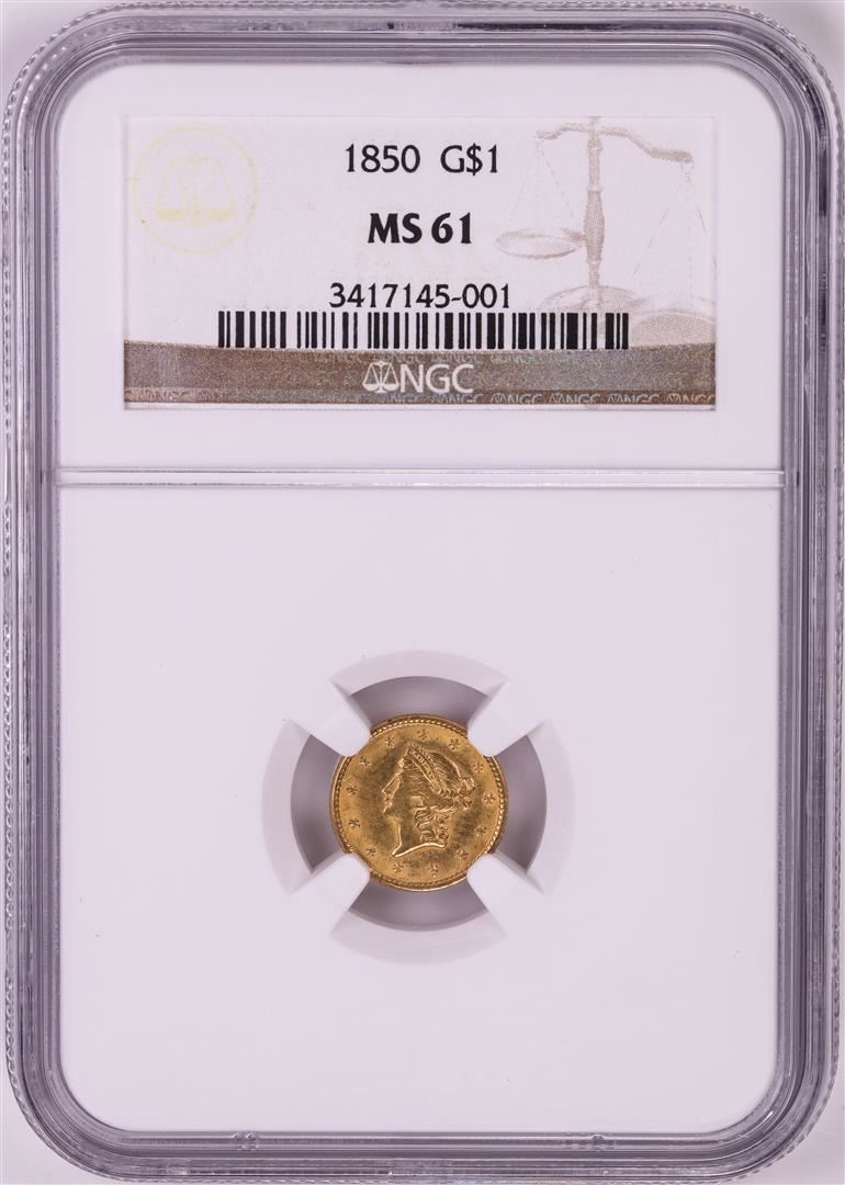 One 1850 $1 Liberty Head Gold Dollar Coin NGC MS61. NGC Certified.