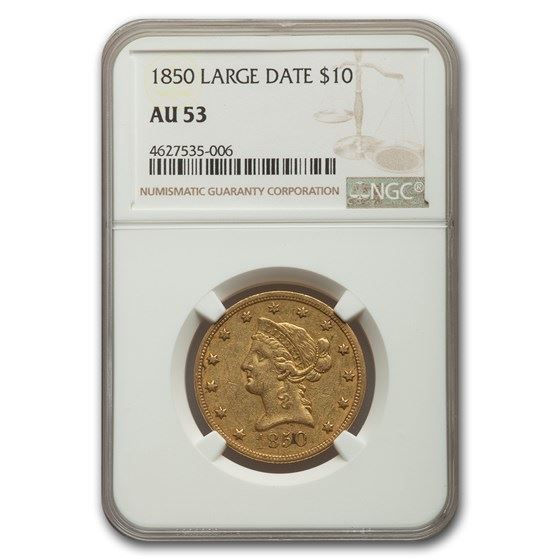 One piece 1850 $10 Liberty Gold Eagle AU-53 NGC (Large Date)