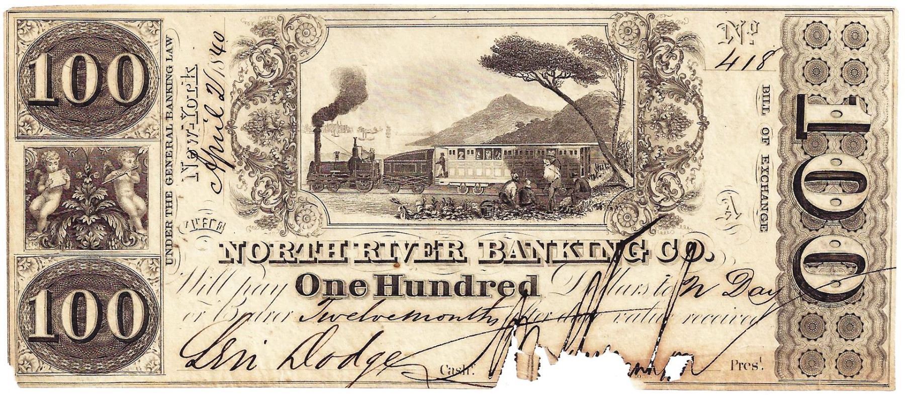 One 1850 $100 North River Banking co, NY Bill of Exchange