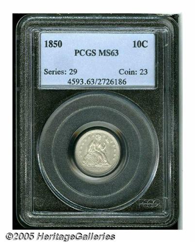 <B>1850<10C> MS63 PCGS.</B></I> The surfaces are steel-gray with a few small abrasions scattered about, which account for the grade. Sharply struck on the obverse with just the slightest softness of details on the reverse.