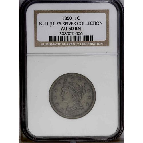 1850 1C AU50 NGC. N-11, High R.3. A scarcer variety id 1850[1C] N-11, High R.3. AU50 NGC. VF30 EAC.