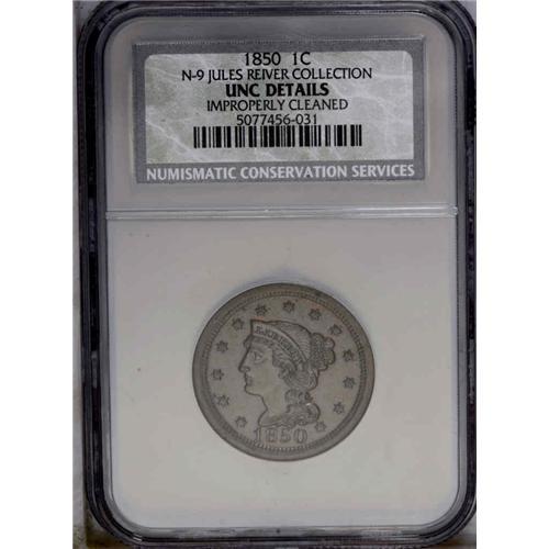1850 1C --Improperly Cleaned--NCS. UNC Details. N-9b, R 1850[1C] N-9, R.2--Improperly Cleaned--NCS.