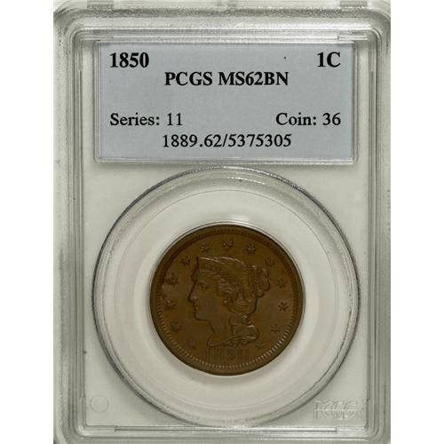 1850 1C MS62 Brown PCGS. PCGS Population (21/163).