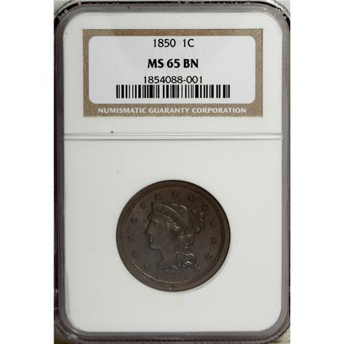 1850 1C MS65 Brown NGC. N-15, R.2. Grellman Die State