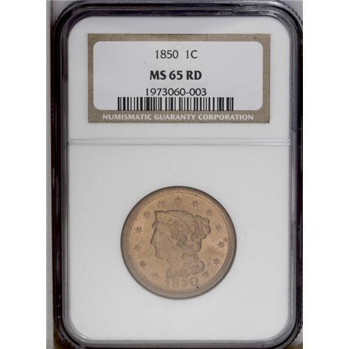 "1850 1C MS65 Red NGC. N-7, R.2. This lo"