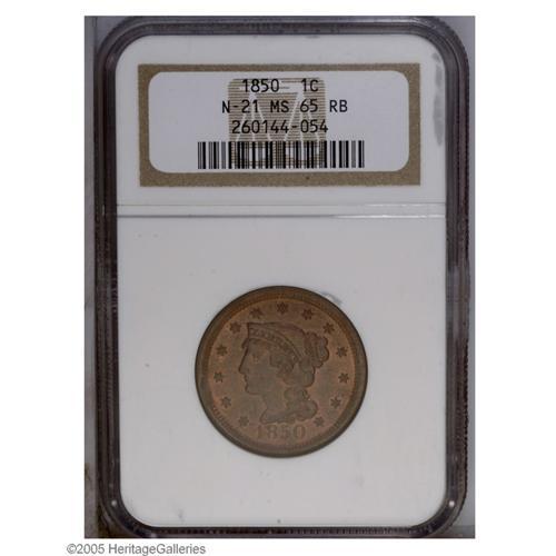 1850 1C MS65 Red and Brown PCGS. N-21, High R.2. Sharp 1850[1C] MS65 Red and Brown PCGS.