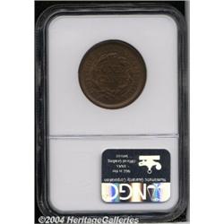 <B>1850<1C> MS66 Red and Brown NGC.</B></I> N-10, High R.2. A late die state of N-21, with mint-made die breaks on the reverse rim at 12 and 2 o'clock. A lustrous, minimally-marked Gem with even reddish-brown toning. The design elements are sharply impressed throughout. Population: 21 in 66, 2 finer (7/04). <BR><BR><B>Important notice:</B> Heritage usually auctions material at the rate of 200-250 lots per hour. On some occasions eBay Live bid software or the Internet may not be able to keep up with the pace of the auction. We recommend placing a realistic absentee bid now as insurance to avoid disappointment. Occasionally the auctioneer may eliminate or reject an eBay Live bid, and the auctioneer may also reopen a lot after the close of the eBay live bidding (usually because we missed an audience bid), and may reject your bid even if it shows you as the winning bidder. By bidding via eBay Live, you agree that Heritage may award the lot to another bidder at its sole discretion under the circumstances described above or any other reasonable circumstances. Since eBay bids are not shown to us until we open the lot on the floor, we treat those bids just like floor bids. In most cases the floor responds before the eBay bid is presented to us, due to Internet lag time, so for consistency we have made it a policy that floor bids are always considered first over tie eBay live bids. Also please note that all Heritage lots purchased through eBay Live carry a 20% Buyer's Premium. Please make sure you read the Terms and Conditions before you bid. </span></font></tr></table></td></tr></table>