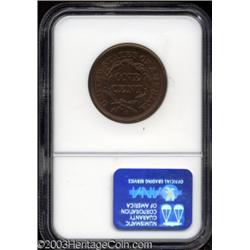 <table><tr><td><TABLE cellSpacing=0 cellPadding=0 width="100%" bgColor=#000000 border=0><TBODY> <TR><TD width="100%"><TABLE cellSpacing=1 cellPadding=3 width="100%" border=0><TBODY><TR><TD width="100%" bgColor=#79735c><FONT face=arial color=#ffffff size=3><B>Description</B> </FONT></TD></TR><TR><TD width="100%" bgColor=#ffffff><FONT face=arial size=2><B>1850 1C MS67 Brown NGC.</B></I> N-21, High R.2. A magnificently preserved Superb Gem of this relatively nondescript Newcomb variety. Well struck and with ample glimpses of faded original red color, especially on the reverse. NGC has certified ten N-21 Cents, and the present example has merited the highest numerical grade. </FONT></TD></TR></TBODY></TABLE></TD></TR></TBODY></TABLE><BR><A name=PricesRealized></A><TABLE cellSpacing=0 cellPadding=0 width="100%" bgColor=#000000 border=0><TBODY><TR><TD width="100%"><TABLE cellSpacing=1 cellPadding=3 width="100%" border=0><TBODY><TR><TD width="100%" bgColor=#79735c><A name=PR><FONT face=arial color=#ffffff size=3><B>Previous Prices from Heritage Auctions</B> </FONT></A></TD></TR><TR><TD bgColor=#f6f6ed><TABLE cellSpacing=0 cellPadding=0 width="100%" border=1><TBODY><TR><TD align=middle width="33%"><B>Date</B></TD><TD align=middle width="33%"><B>Service</B></TD><TD align=middle width="33%"><B>Price</B></TD></TR><TR bgColor=whitesmoke><TD width="33%"><B>11/23/2002</B></TD><TD width="33%">NGC</TD><TD width="33%">$1,380.00</TD></TR><TR bgColor=whitesmoke><TD width="33%"><B>09/24/1999</B></TD><TD width="33%">NGC</TD><TD width="33%">$2,242.50</TD></TR></TBODY></TABLE></TD></TR><TR><TD bgColor=#ffffff><FONT face=arial size=1 ?>PLEASE NOTE: All prices realized reflect the final hammer price PLUS the buyer's premium in auctions that charge a buyer's premium. Each item has a notation at the top of the listing indicating whether that lot included a buyer's premium. Example: A item that sells with a final hammer price of $100 and a 20% buyer's premium will display with a price realized of $120. All information listed is intended to be as accurate as possible, but errors are possible. Please use this guide carefully and inform us of any inaccuracies. </FONT></TD></TR></TBODY></TABLE></TD></TR></TBODY></TABLE><BR><TABLE cellSpacing=0 cellPadding=0 width="100%" bgColor=#000000 border=0><TBODY><TR><TD width="100%"><TABLE cellSpacing=1 cellPadding=3 width="100%" border=0><TBODY><TR><TD width="100%" bgColor=#79735c colSpan=6><FONT face=arial color=#ffffff size=3><B>Price Guide*</B> </FONT></TD></TR><TR bgColor=#f6f6ed><TD align=middle><B>Grade</B> </TD><TD align=middle><B>Coin World<BR>(Trends)</B> </TD><TD align=middle><B>Numismedia<BR>Retail</B> </TD><TD align=middle><B>Numismedia<BR>Wholesale</B> </TD><TD align=middle><B>Coin<BR>Universe</B> </TD><TD align=middle><B>Heritage<BR>Value Index</B> </TD></TR><TR bgColor=#ffffff><TD align=middle>66</TD><TD align=right>---</TD><TD align=right>$880.00</TD><TD align=right>$700.00</TD><TD align=right>$1,250.00</TD><TD align=right>---</TD></TR><TR style="FONT-WEIGHT: bold" bgColor=#cccfdd><TD align=middle>67</TD><TD align=right>---</TD><TD align=right>---</TD><TD align=right>$2,245.00</TD><TD align=right>---</TD><TD align=right>---</TD></TR><TR bgColor=#ffffff><TD align=middle>68</TD><TD align=right>---</TD><TD align=right>---</TD><TD align=right>---</TD><TD align=right>---</TD><TD align=right>---</TD></TR><TR bgColor=#ffffff><TD colSpan=6><FONT size=1>*All information listed is intended to be as accurate as possible, but errors are possible. No item may be returned or refused based on this information which is provided as a service to our customers. You should contact each pricing source directly to determine the accuracy of this information. </FONT></TD></TR></TBODY></TABLE></TD></TR></TBODY></TABLE><BR><TABLE cellSpacing=0 cellPadding=0 width="100%" bgColor=#000000 border=0><TBODY><TR><TD width="100%"><TABLE cellSpacing=1 cellPadding=3 width="100%" border=0><TBODY><TR><TD width="100%" bgColor=#79735c><FONT face=arial color=#ffffff size=3><B>Population Guide</B> </FONT></TD></TR><TR bgColor=#ffffff><TD align=middle><!-- Begin Output of Population Grid--><TABLE cellSpacing=0 cellPadding=0 width="100%" border=0><TBODY><TR><TD vAlign=center><TABLE cellSpacing=0 width="100%" border=1 cellsadding="3"><TBODY><TR><TD vAlign=center><TABLE cellSpacing=0 cellPadding=3 width="100%" border=1><TBODY><TR><TD vAlign=center align=middle bgColor=#f0f1e8 colSpan=2 <CENTER><FONT face=Arial size=2><B>PCGS Pop </B></FONT><CENTER></CENTER></TD><TD vAlign=center align=middle bgColor=#f0f1e8 colSpan=2><CENTER><FONT face=Arial size=2><B>NGC Pop</B></CENTER></FONT></TD></TR><TR><TD vAlign=center><FONT face=Arial size=2>(67)</FONT> </TD><TD vAlign=center align=right><FONT face=Arial size=2>0</FONT> </TD><TD vAlign=center><FONT face=Arial size=2>(67)</FONT> </TD><TD vAlign=center align=right><FONT face=Arial size=2>6</FONT> </TD></TR><TR><TD vAlign=center><FONT face=Arial size=2>(>67)</FONT> </TD><TD vAlign=center align=right><FONT face=Arial size=2>0</FONT> </TD><TD vAlign=center><FONT face=Arial size=2>(>67)</FONT> </TD><TD vAlign=center align=right><FONT face=Arial size=2>0</FONT> </TD></TR></TBODY></TABLE></TD></TR></TBODY></TABLE></TD></TR></TBODY></TABLE><!-- End Output of Population Grid--></TD></TR></TBODY></TABLE></TD></TR></TBODY></TABLE><BR><TABLE cellSpacing=0 cellPadding=0 width="100%" bgColor=#000000 border=0><TBODY><TR> Important notice: Heritage usually auctions material at the rate of 200-250 lots per hour. On some occasions eBay Live bid software or the Internet may not be able to keep up with the pace of the auction. We recommend placing a realistic absentee bid now as insurance to avoid disappointment. Occasionally the auctioneer may eliminate or reject an eBay Live bid, and the auctioneer may also reopen a lot after the close of the eBay live bidding (usually because we missed an audience bid), and may reject your bid even if it shows you as the winning bidder. By bidding via