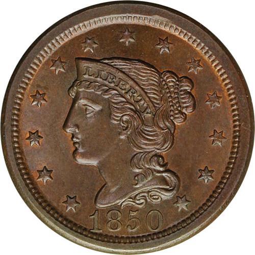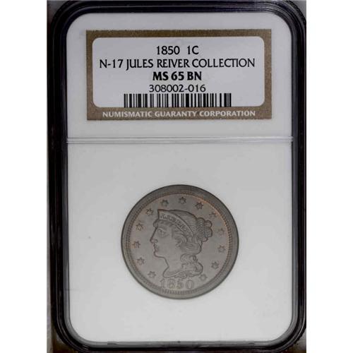 1850 1C N-17, High R.4. MS65 Brown NGC. AU58 EAC. Grel 1850[1C] N-17, High R.4. MS65 Brown NGC. AU58