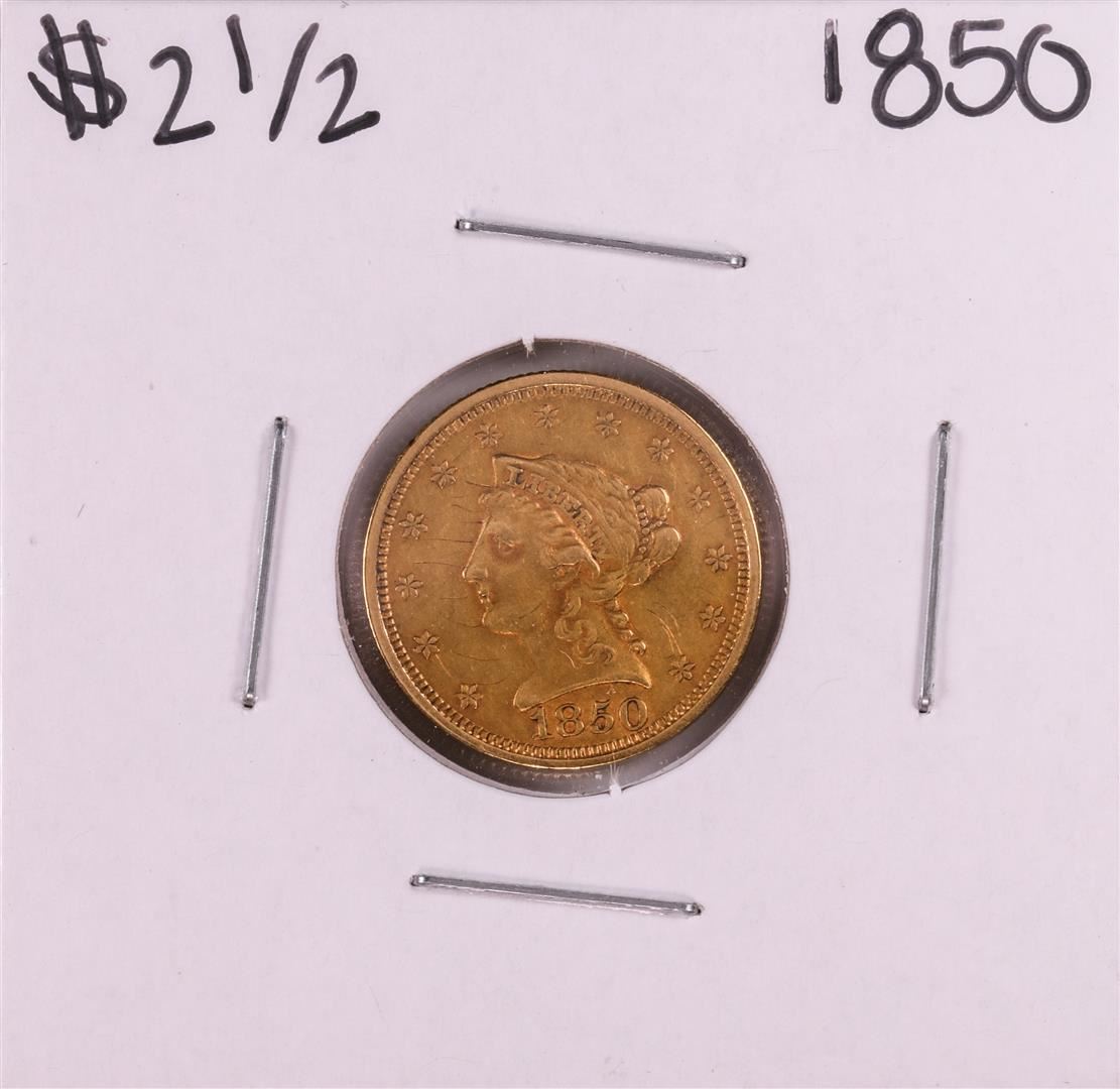 One 1850 $2 1/2 Liberty Head Quarter Eagle Gold Coin.