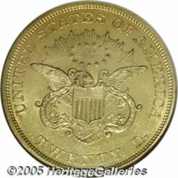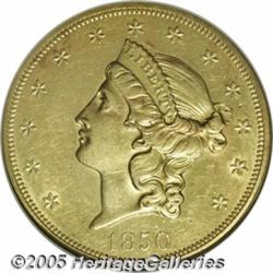 <B>1850 $20 AU55 NGC.</B></I> Very well struck for this popular first-year issue, with ample luster in the protected areas. The surfaces have taken on a rich yellow-golden appearance.<BR><I>From The Richard J. Chouinard Collection of United States Coins, Part Three.</B></I>