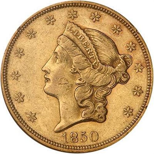 This piece has the usual abrasions in the fields and on the cheek, with light orange-gold toning and luster within the devices and surrounding the stars, date and legends. The rims are choice, though do show one or two very minor marks as well. Historic as the first $20 gold date.