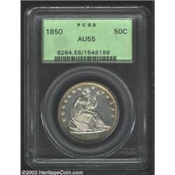1850 50C AU55 PCGS. WB-102. The 0 in the date is recut southeast. A sharply struck example that has.