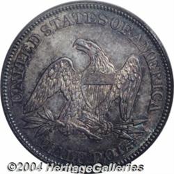 <B>1850<50C> MS64 PCGS.</B></I> Boldly detailed with innumerable die striations on the obverse and few appreciable signs of contact. Both sides are overlaid in lilac-gray and russet toning that lends an aura of originality to this Choice example. The 1850 Half is scarce in any Mint State grade and only a handful of survivors compare to the quality of this attractive representative. Population: 3 in 64, 2 finer (7/04). <BR><BR><B>Important notice:</B> Heritage usually auctions material at the rate of 200-250 lots per hour. On some occasions eBay Live bid software or the Internet may not be able to keep up with the pace of the auction. We recommend placing a realistic absentee bid now as insurance to avoid disappointment. Occasionally the auctioneer may eliminate or reject an eBay Live bid, and the auctioneer may also reopen a lot after the close of the eBay live bidding (usually because we missed an audience bid), and may reject your bid even if it shows you as the winning bidder. By bidding via eBay Live, you agree that Heritage may award the lot to another bidder at its sole discretion under the circumstances described above or any other reasonable circumstances. Since eBay bids are not shown to us until we open the lot on the floor, we treat those bids just like floor bids. In most cases the floor responds before the eBay bid is presented to us, due to Internet lag time, so for consistency we have made it a policy that floor bids are always considered first over tie eBay live bids. Also please note that all Heritage lots purchased through eBay Live carry a 20% Buyer's Premium. Please make sure you read the Terms and Conditions before you bid. </span></font></tr></table></td></tr></table>