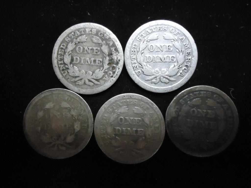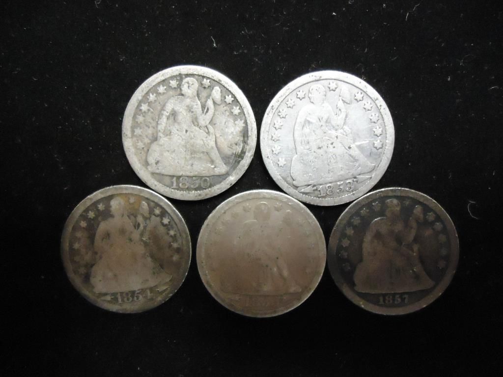 1850,53,54,55 & 57 SEATED LIBERTY DIMES