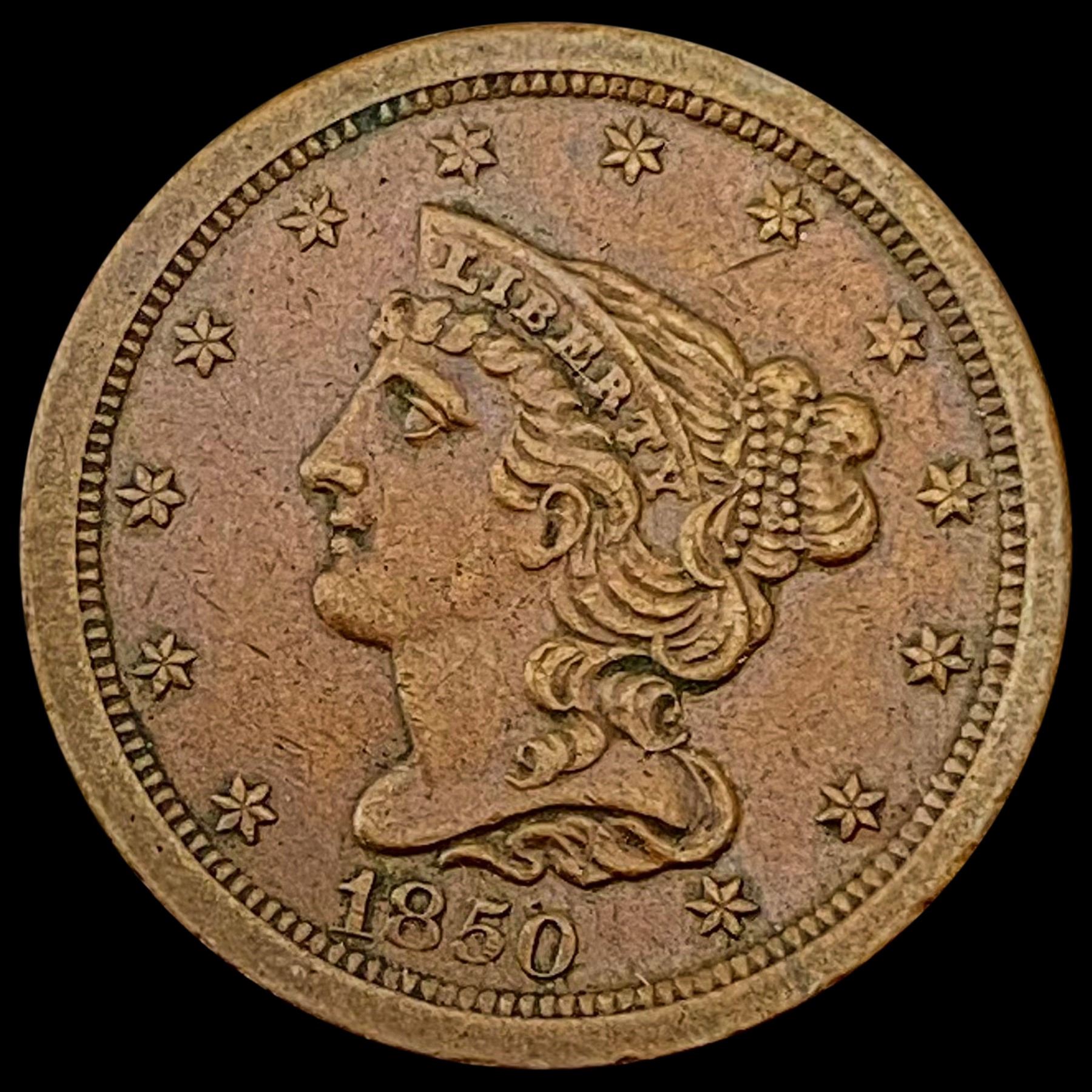 1850 Braided Hair Half Cent CLOSELY UNCIRCULATED CLOSELY UNCIRCULATED