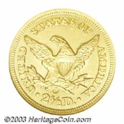 <table><tr><td><TABLE cellSpacing=0 cellPadding=0 width="100%" bgColor=#000000 border=0><TBODY> <TR><TD width="100%"><TABLE cellSpacing=1 cellPadding=3 width="100%" border=0><TBODY><TR><TD width="100%" bgColor=#79735c><FONT face=arial color=#ffffff size=3><B>Description</B> </FONT></TD></TR><TR><TD width="100%" bgColor=#ffffff><FONT face=arial size=2><B>1850-C $2 1/2 --Rim Filed, Cleaned--ANACS. Unc Details, Net AU50.</B></I> Winter 12-G. Only 9,148 pieces of this date were struck at Charlotte, although it is actually seen with slightly greater frequency than some higher mintage C-mint issues. It is ranked 15th in overall rarity and 12th in high grade rarity by Winter. This is a bright, fully lustrous yellow-gold that comes with much sharper definition than is normally encountered on the '50-C. Multiple clashmarks are seen about the central devices on both obverse and reverse, a hallmark of this die pairing. Although net graded by ANACS, the cleaning on this strongly detailed Charlotte Quarter Eagle is hardly offensive. </FONT></TD></TR></TBODY></TABLE></TD></TR></TBODY></TABLE><BR><A name=PricesRealized></A><TABLE cellSpacing=0 cellPadding=0 width="100%" bgColor=#000000 border=0><TBODY><TR><TD width="100%"><TABLE cellSpacing=1 cellPadding=3 width="100%" border=0><TBODY><TR><TD width="100%" bgColor=#79735c><A name=PR><FONT face=arial color=#ffffff size=3><B>Previous Prices from Heritage Auctions</B> </FONT></A></TD></TR><TR><TD bgColor=#f6f6ed><TABLE cellSpacing=0 cellPadding=0 width="100%" border=1><TBODY><TR><TD align=middle width="33%"><B>Date</B></TD><TD align=middle width="33%"><B>Service</B></TD><TD align=middle width="33%"><B>Price</B></TD></TR><TR bgColor=whitesmoke><TD width="33%"><B>08/17/1996</B></TD><TD width="33%">PCGS</TD><TD width="33%">$2,750.00</TD></TR><TR bgColor=whitesmoke><TD width="33%"><B>11/12/1993</B></TD><TD width="33%">PCGS</TD><TD width="33%">$2,310.00</TD></TR><TR bgColor=whitesmoke><TD width="33%"><B>01/01/1996</B></TD><TD width="33%">NGC</TD><TD width="33%">$1,980.00</TD></TR></TBODY></TABLE></TD></TR><TR><TD bgColor=#ffffff><FONT face=arial size=1 ?>PLEASE NOTE: All prices realized reflect the final hammer price PLUS the buyer's premium in auctions that charge a buyer's premium. Each item has a notation at the top of the listing indicating whether that lot included a buyer's premium. Example: A item that sells with a final hammer price of $100 and a 20% buyer's premium will display with a price realized of $120. All information listed is intended to be as accurate as possible, but errors are possible. Please use this guide carefully and inform us of any inaccuracies. </FONT></TD></TR></TBODY></TABLE></TD></TR></TBODY></TABLE><BR><TABLE cellSpacing=0 cellPadding=0 width="100%" bgColor=#000000 border=0><TBODY><TR><TD width="100%"><TABLE cellSpacing=1 cellPadding=3 width="100%" border=0><TBODY><TR><TD width="100%" bgColor=#79735c colSpan=6><FONT face=arial color=#ffffff size=3><B>Price Guide*</B> </FONT></TD></TR><TR bgColor=#f6f6ed><TD align=middle><B>Grade</B> </TD><TD align=middle><B>Coin World<BR>(Trends)</B> </TD><TD align=middle><B>Numismedia<BR>Retail</B> </TD><TD align=middle><B>Numismedia<BR>Wholesale</B> </TD><TD align=middle><B>Coin<BR>Universe</B> </TD><TD align=middle><B>Heritage<BR>Value Index</B> </TD></TR><TR bgColor=#ffffff><TD align=middle>45</TD><TD align=right>$2,500.00</TD><TD align=right>---</TD><TD align=right>---</TD><TD align=right>---</TD><TD align=right>$1,781.94</TD></TR><TR style="FONT-WEIGHT: bold" bgColor=#cccfdd><TD align=middle>50</TD><TD align=right>$3,500.00</TD><TD align=right>---</TD><TD align=right>$2,525.00</TD><TD align=right>---</TD><TD align=right>$2,487.22</TD></TR><TR bgColor=#ffffff><TD align=middle>53</TD><TD align=right>---</TD><TD align=right>---</TD><TD align=right>$2,925.00</TD><TD align=right>---</TD><TD align=right>$4,176.39</TD></TR><TR bgColor=#ffffff><TD colSpan=6><FONT size=1>*All information listed is intended to be as accurate as possible, but errors are possible. No item may be returned or refused based on this information which is provided as a service to our customers. You should contact each pricing source directly to determine the accuracy of this information. </FONT></TD></TR></TBODY></TABLE></TD></TR></TBODY></TABLE><BR><TABLE cellSpacing=0 cellPadding=0 width="100%" bgColor=#000000 border=0><TBODY><TR><TD width="100%"><TABLE cellSpacing=1 cellPadding=3 width="100%" border=0><TBODY><TR><TD width="100%" bgColor=#79735c><FONT face=arial color=#ffffff size=3><B>Population Guide</B> </FONT></TD></TR><TR bgColor=#ffffff><TD align=middle><!-- Begin Output of Population Grid--><TABLE cellSpacing=0 cellPadding=0 width="100%" border=0><TBODY><TR><TD vAlign=center><TABLE cellSpacing=0 width="100%" border=1 cellsadding="3"><TBODY><TR><TD vAlign=center><TABLE cellSpacing=0 cellPadding=3 width="100%" border=1><TBODY><TR><TD vAlign=center align=middle bgColor=#f0f1e8 colSpan=2 <CENTER><FONT face=Arial size=2><B>PCGS Pop </B></FONT><CENTER></CENTER></TD><TD vAlign=center align=middle bgColor=#f0f1e8 colSpan=2><CENTER><FONT face=Arial size=2><B>NGC Pop</B></CENTER></FONT></TD></TR><TR><TD vAlign=center><FONT face=Arial size=2>(50)</FONT> </TD><TD vAlign=center align=right><FONT face=Arial size=2>17</FONT> </TD><TD vAlign=center><FONT face=Arial size=2>(50)</FONT> </TD><TD vAlign=center align=right><FONT face=Arial size=2>8</FONT> </TD></TR><TR><TD vAlign=center><FONT face=Arial size=2>(>50)</FONT> </TD><TD vAlign=center align=right><FONT face=Arial size=2>25</FONT> </TD><TD vAlign=center><FONT face=Arial size=2>(>50)</FONT> </TD><TD vAlign=center align=right><FONT face=Arial size=2>48</FONT> </TD></TR></TBODY></TABLE></TD></TR></TBODY></TABLE></TD></TR></TBODY></TABLE><!-- End Output of Population Grid--></TD></TR></TBODY></TABLE></TD></TR></TBODY></TABLE><BR><TABLE cellSpacing=0 cellPadding=0 width="100%" bgColor=#000000 border=0><TBODY><TR> Important notice: Heritage usually auctions material at the rate of 2