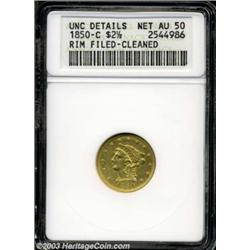 1850-C $2 1/2 --Rim Filed, Cleaned--ANACS. Unc Details, Net AU50.