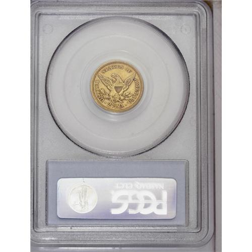 <B>1850-C<$2 1/2> VF35 PCGS.</B></I> Variety 12-G. A rare Charlotte quarter eagle with around 220 pieces graded at PCGS and NGC combined, and this figure is almost certain to include a number of resubmissions. This piece shows diagnostic weakness on the eagle's neck and leg feathers, and it appears to have been produced on a well prepared planchet. Light red-orange and lime-green color adorns the evenly worn surfaces, with no mentionable abrasions on either side. A small dash of red-brown toning is noted between the eagle's beak and upper wing edge.<BR><I>From The Carolina Gold Collection, Part Three.</B></I>