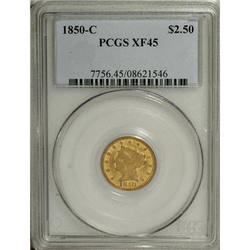 1850-C $2 1/2 XF45 PCGS. Variety 12-G. Only 9,148 coin