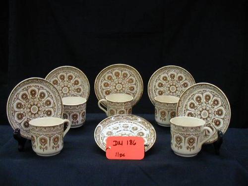 1850, EARLY, ENGLISH,AESTHETIC BROWN TRANSFER inCYPRUSin, 10 PC DEMI SET, BROWNFIELD & SON, GREAT GLAZE, 10 PCS