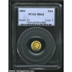1850 G$1 MS62 PCGS. A sharply struck representative that has extensive luster and clean surfaces. Wh