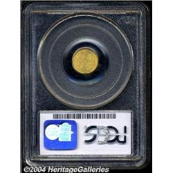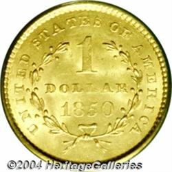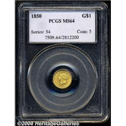 <B>1850<G$1> MS64 PCGS.</B></I> Brilliant and lustrous with near-full definition and a few light marks that prevent Gem consideration. Much scarcer in Choice and finer conditions than a mintage of 481,953 pieces might indicate. Population: 30 in 64, 12 finer (3/04). <BR><BR><B>Important notice:</B> Heritage usually auctions material at the rate of 200-250 lots per hour. On some occasions eBay Live bid software or the Internet may not be able to keep up with the pace of the auction. We recommend placing a realistic absentee bid now as insurance to avoid disappointment. Occasionally the auctioneer may eliminate or reject an eBay Live bid, and the auctioneer may also reopen a lot after the close of the eBay live bidding (usually because we missed an audience bid), and may reject your bid even if it shows you as the winning bidder. By bidding via eBay Live, you agree that Heritage may award the lot to another bidder at its sole discretion under the circumstances described above or any other reasonable circumstances. Since eBay bids are not shown to us until we open the lot on the floor, we treat those bids just like floor bids. In most cases the floor responds before the eBay bid is presented to us, due to Internet lag time, so for consistency we have made it a policy that floor bids are always considered first over tie eBay live bids. Also please note that all Heritage lots purchased through eBay Live carry a 20% Buyer's Premium. Please make sure you read the Terms and Conditions before you bid. </span></font></tr></table></td></tr></table>