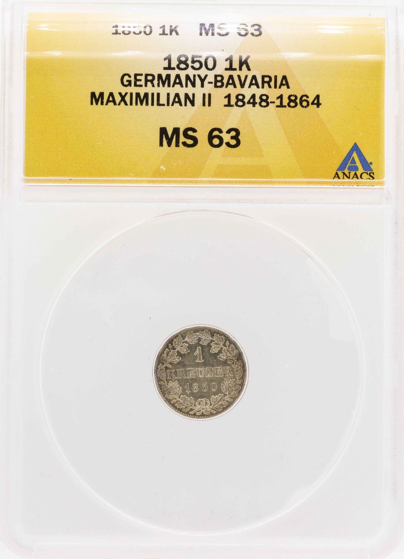 One 1850 Germany-Bavaria Maximilian II 1 Kreuzer Coin ANACS MS63.