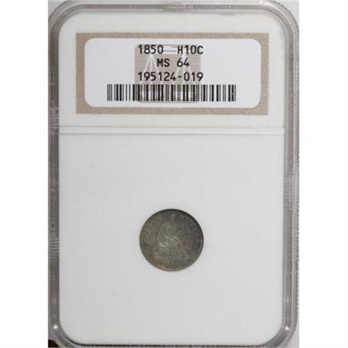 <B>1850 H10C MS64 NGC.</B></I> NGC Census: (57/49). PCGS Population (31/44). Mintage: 955,000. Numismedia Wsl. Price for NGC/PCGS coin in MS64: $550. (#4345)<BR><BR><B>Coin Engraver:</B> Christian Gobrecht<BR><BR><b>Shipping:</b> Coins & Currency (<a target="_blank" href="http://www.heritageauctions.com/common/shipping.php">view shipping information</a>)