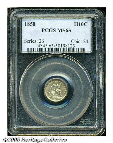 <B>1850<H10C> MS65 PCGS.</B></I> Medium apricot color graces this lustrous and nicely struck Gem. Thorough evaluation fails to reveal any remotely significant contact. A splendid type coin, and also worthy of an outstanding specialized holding. Population: 14 in 65, 20 finer (4/05).