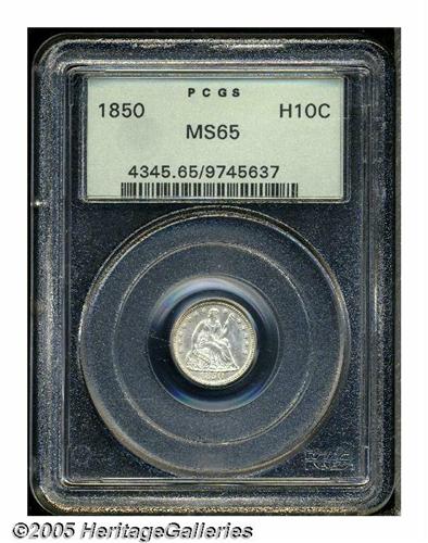 <B>1850<H10C> MS65 PCGS.</B></I> Untoned with generally sharp detail and satiny fields that incorporate a bit of prooflike luster on the obverse, being struck from a striated die. Population: 14 in 65, 20 finer (5/05).