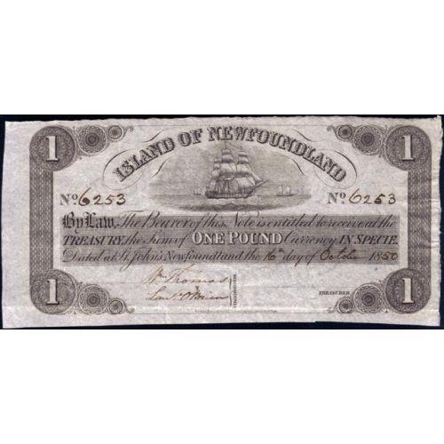 1850 Island of Newfoundland One Pound, NF-1a, EF