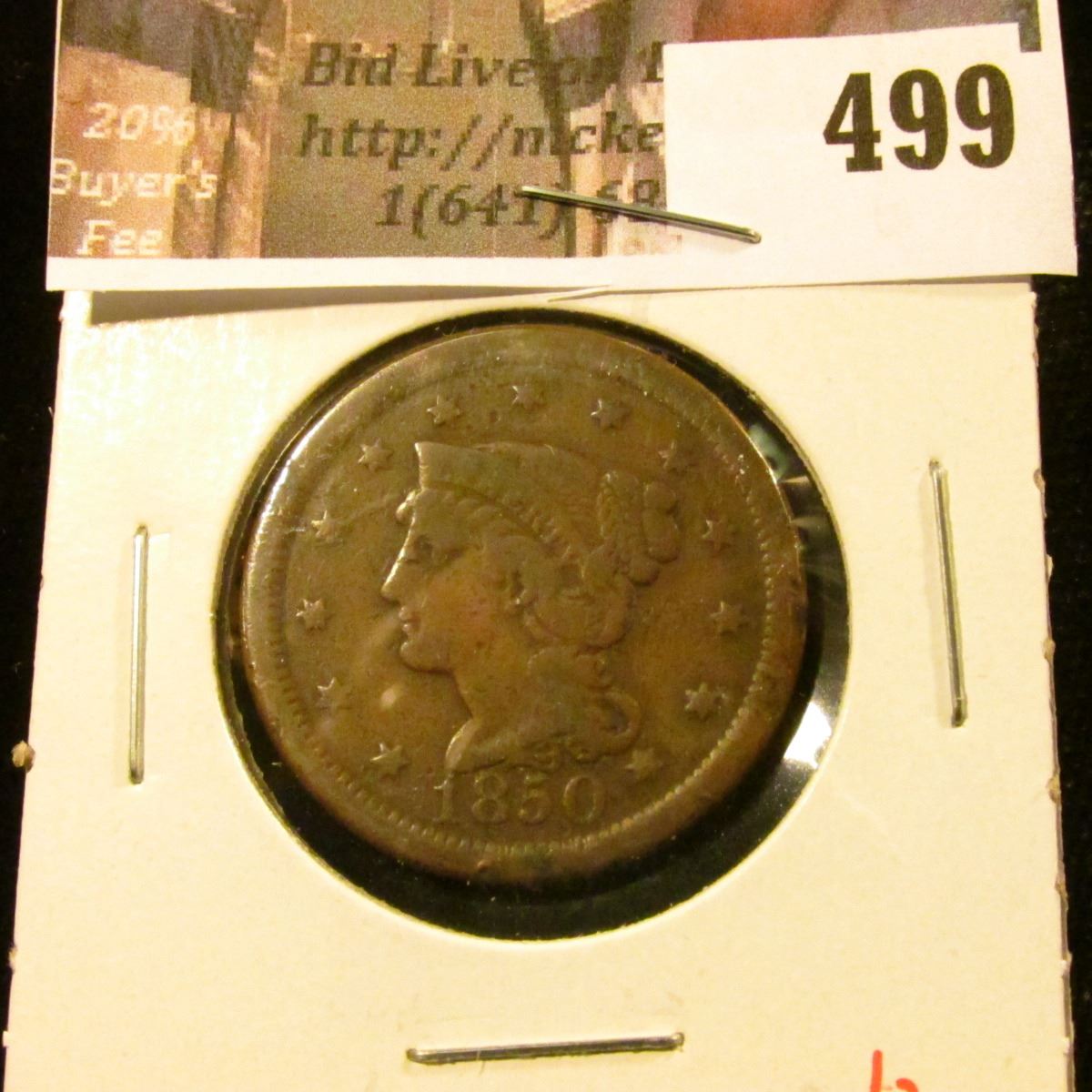 1850 Large Cent, G, value $20