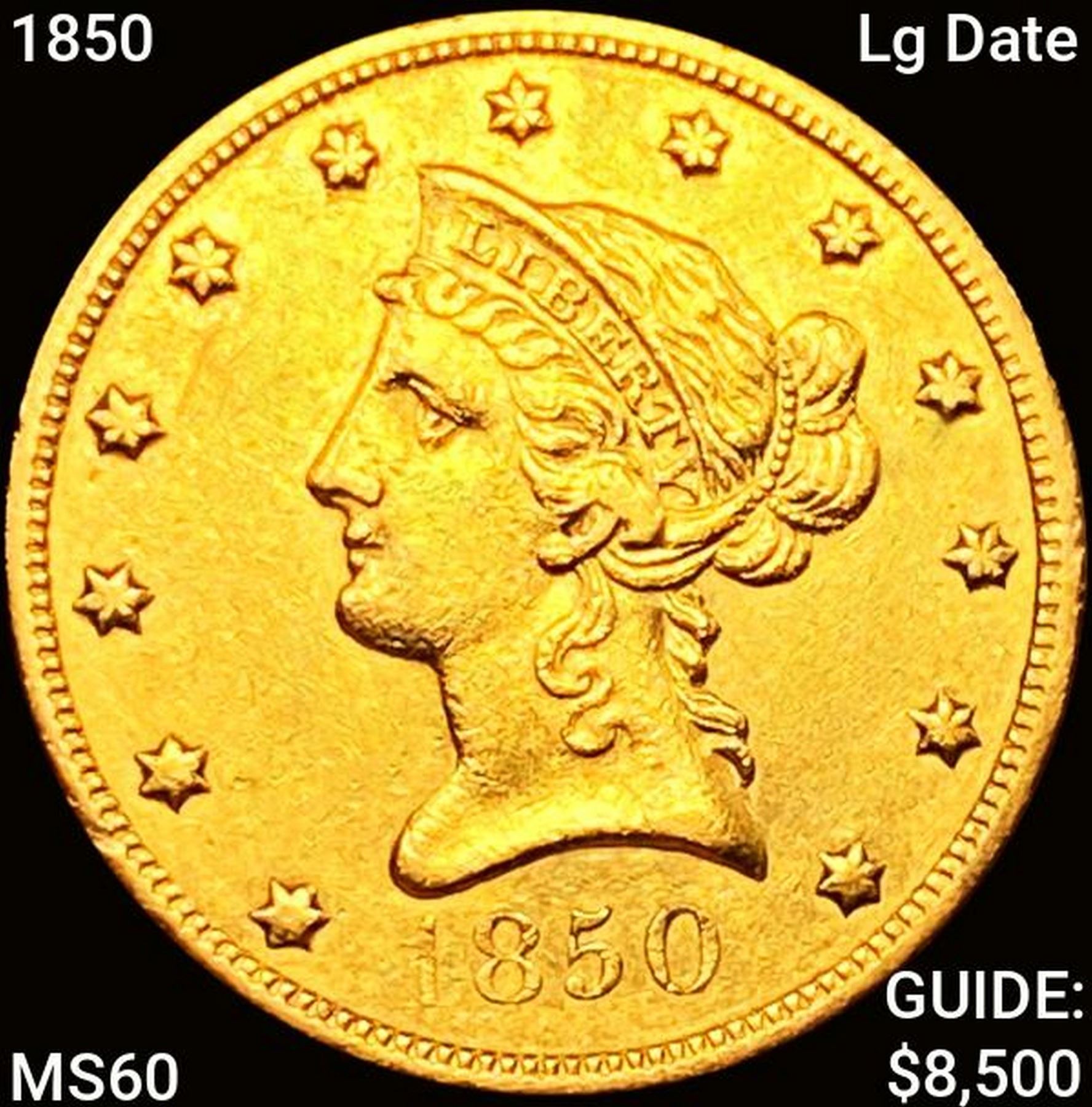 1850 Lg Date $10 Gold Eagle UNCIRCULATED