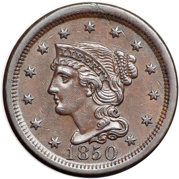 1850 N-26 R4 EF40. Choice glossy chocolate and steel brown. Traces of mint frost remain in protected areas, especially on the reverse. Just a few trivial ticks from flawless. LDS, die state b.