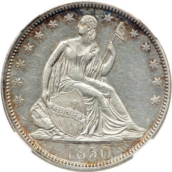 1850 NGC graded AU Details. Whizzed. Scarce date. Still a nice looking coin, one of just 227,000 made (one-tenth the number of the 1850-O).