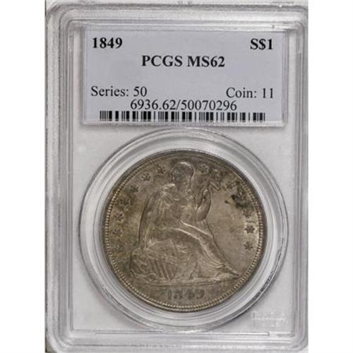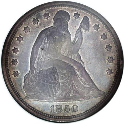 <B>1850-O $1 AU55 ANACS.</B></I> Medium gray patination, imbued with traces of mauve, dominates both sides of this Choice AU dollar. The strike is typical for the New Orleans Mint, with some softness apparent on Liberty's head. The only mark worthy of mention is a milling mark on Liberty's midsection.<BR><BR><B>Coin Engraver:</B> Christian Gobrecht<BR><BR><b>Shipping:</b> Coins & Currency (<a target="_blank" href="http://www.heritageauctions.com/common/shipping.php">view shipping information</a>)