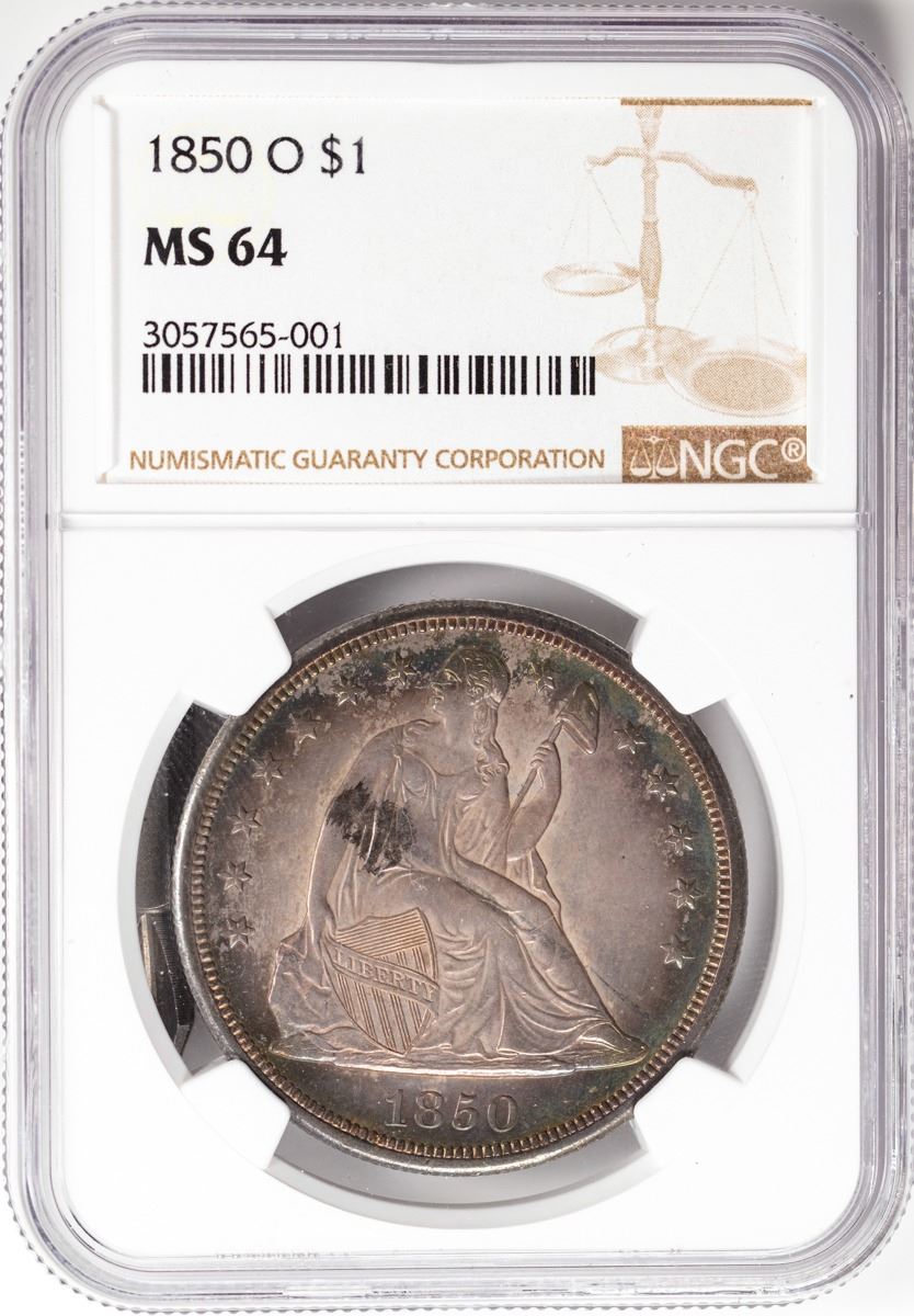 One 1850-O $1 Seated Liberty Dollar Coin NGC MS64 Finest Known.