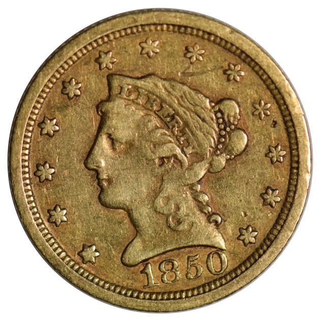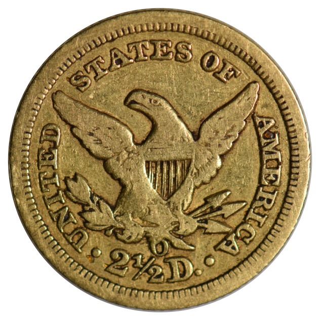 One 1850-O $2.5 Liberty Quarter Eagle Gold Coin scratch.