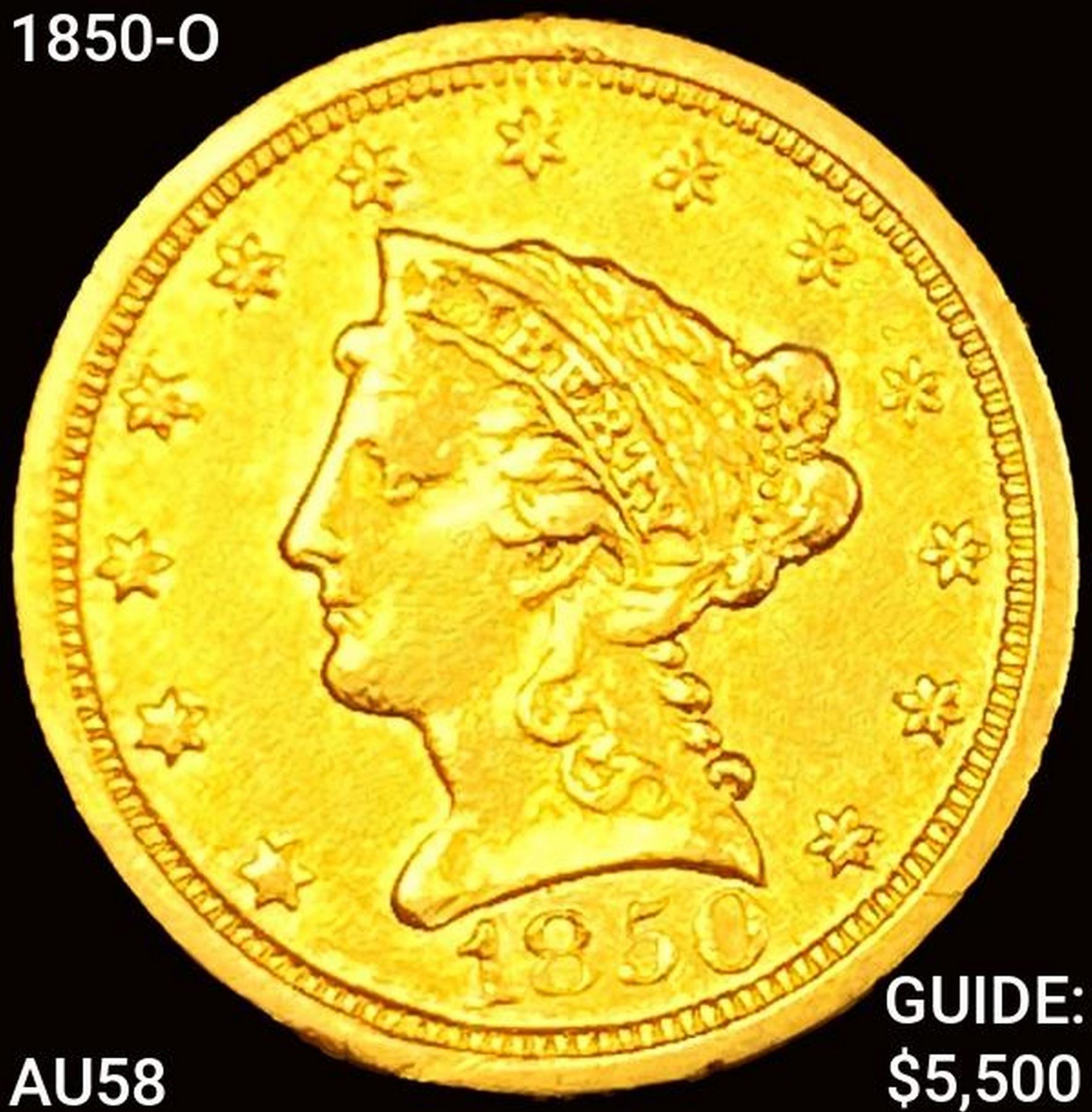 1850-O $2.50 Gold Quarter Eagle CLOSELY UNCIRCULAT