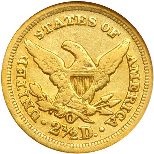 1850-O $2.50 Liberty. PCGS graded EF-40. Only 225 examples are estimated to have survived. Pop 24; 97 finer (PCGS # 7758) .