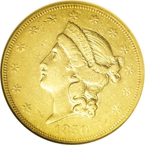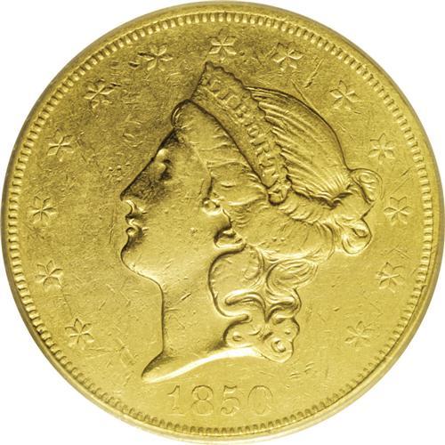 <B>1850-O<$20> AU50 NGC.</B></I> The 1850-O is a popular issue with collectors due to its status as the first double eagle to be struck at the New Orleans Mint. It can be fairly easily located in VF and XF grades, while AU specimens become more challenging. The '50-O is quite rare in Mint State. The AU50 example in this lot displays apricot-gold color, and traces of luster in the protected areas. Nice detail is generally seen on the motifs, though some of Liberty's hair curls are a bit smooth. The expected bag marks are noted, especially on the obverse.