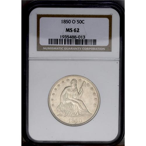 <B>1850-O<50C> MS62 NGC.</B></I> Light golden-gray color is evenly distributed over both sides of this well struck example. Fully lustrous and nicely preserved with very few surface marks for the grade.
