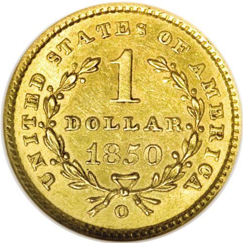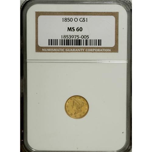 1850-O G$1 MS60 NGC. The 14,000-piece mintage of the 1