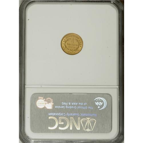 <B>1850-O G$1 MS60 NGC.</B></I> The 14,000-piece mintage of the 1850-O is the lowest of any New Orleans gold dollar, and is a scarce issue in any grade. This MS60 specimen displays yellow-gold surfaces that are tinged with light green, and is sharply defined throughout. Light handling marks are noted over each side.<BR><BR><b>Shipping:</b> Coins & Currency (<a target="_blank" href="http://www.heritageauctions.com/common/shipping.php">view shipping information</a>)