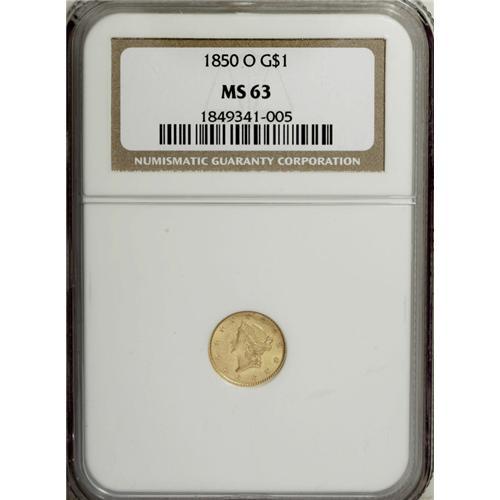 1850-O G$1 MS63 NGC. The 1850-O, with a mintage of 14