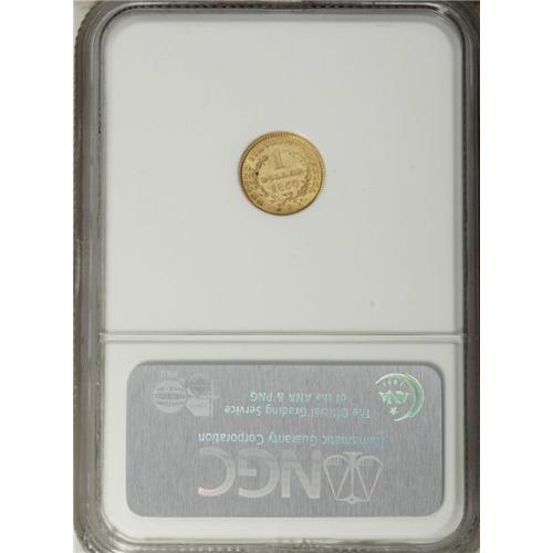 <B>1850-O G$1 MS63 NGC.</B></I> The 1850-O, with a mintage of 14,000 pieces, is the rarest New Orleans gold dollar, and is extremely difficult to locate in Mint State. This Select Uncirculated example is sharply struck, as are most examples of this issue. Bright yellow-gold surfaces display pleasing luster, and reveal a minimal amount of handling marks. Census: 5 in 63, 1 finer (12/06).<BR><BR><b>Shipping:</b> Coin/Currency (<a target="_blank" href="http://www.heritageauctions.com/common/shipping.php">view shipping information</a>)